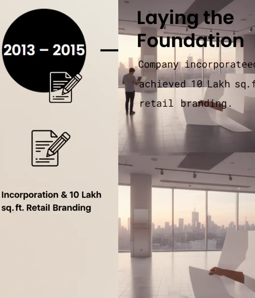 Introduced Outdoor & Exhibition Division, completing 1 Crore sq. ft. of retail branding.