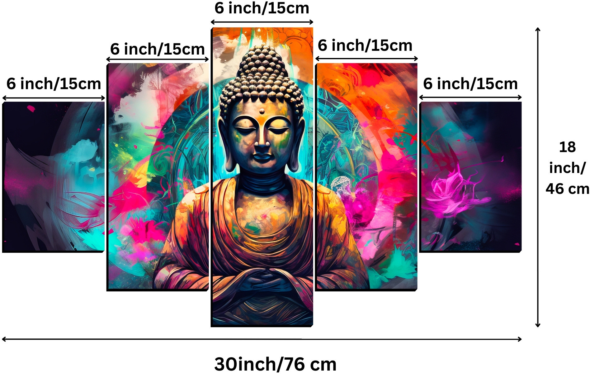 Create a calming atmosphere in your home with this beautiful Buddha Meditating Painting. This 30×18 inches MDF board artwork is a high-quality digital reprint that brings peace and harmony to your surroundings. Equipped with double-sided tape at the back, it is effortless to hang and makes an excellent addition to your wall decor and home decor collection.