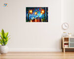 Step into a world of romance and color with CrystalSigns “Romance in the Rain Vibrant Love” painting. This breathtaking artwork captures a couple sharing a tender moment under a single umbrella, walking down a dreamy, rain-soaked pathway illuminated by glowing street lamps and surrounded by a kaleidoscope of vibrant leaves.