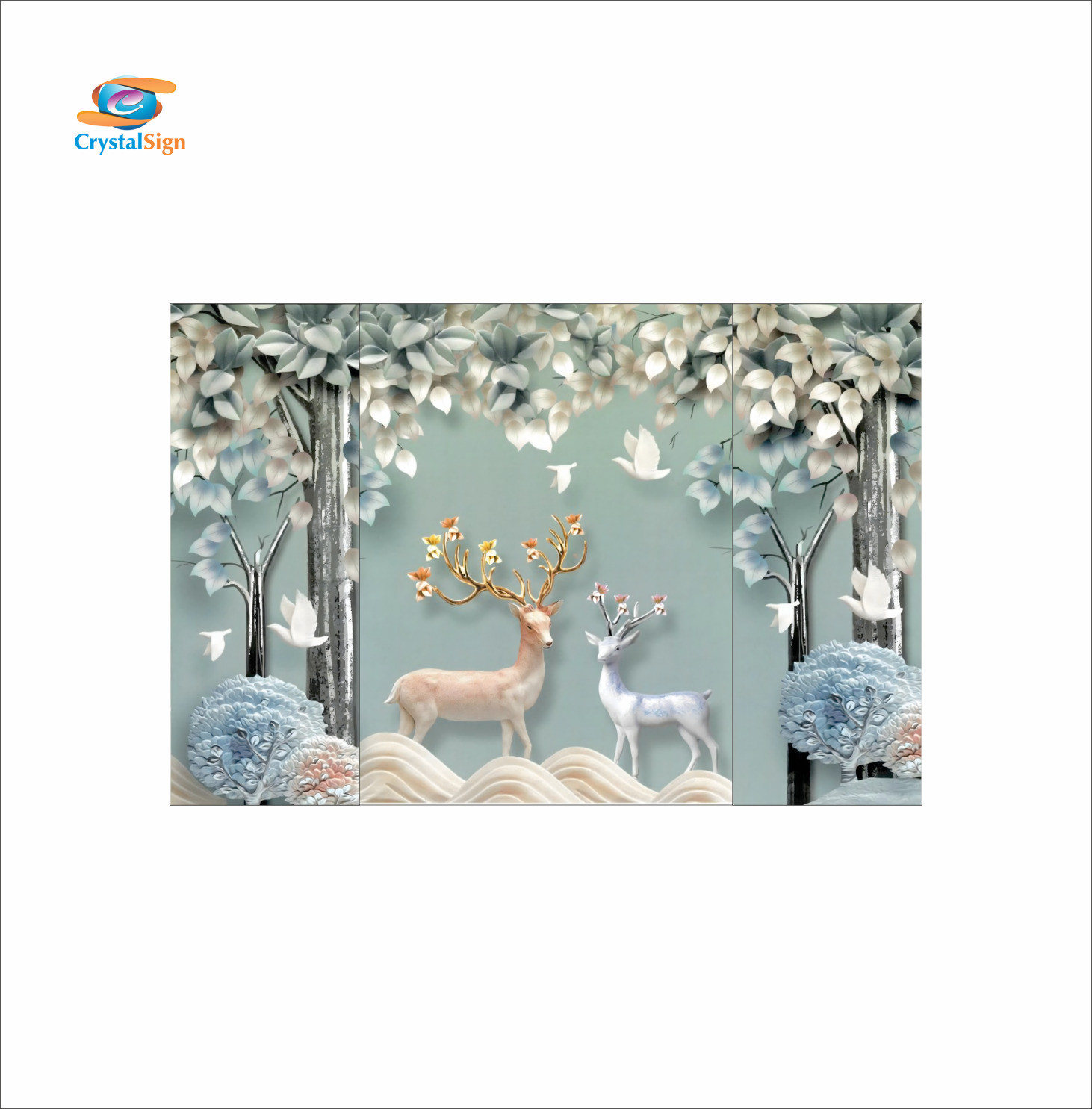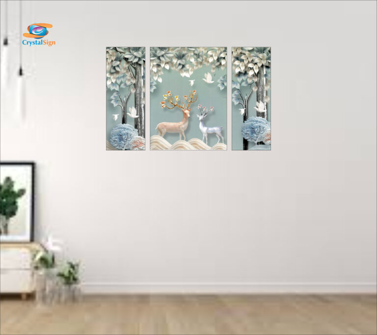 Bring home the calm of the forest with CrystalSigns “Serenity in the Wild” a breathtaking three-piece crystal canvas set, beautifully illustrating the grace of deer amidst a dreamy, enchanted woodland. Adorned with delicate trees, fluttering white birds, and antlers that bloom like golden branches, this artwork symbolizes peace, prosperity, and natural harmony.